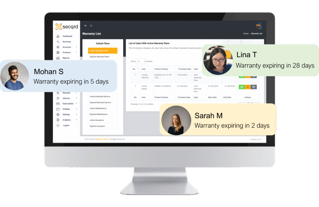 Secqrd insurance is developed with several underwriters that are tailored specifically to devices that are sold with a warranty. Each insurance policy can be easily purchased by your buyers after they have registered your device. Your business will receive a cut from the sale of each policy. T&C applies